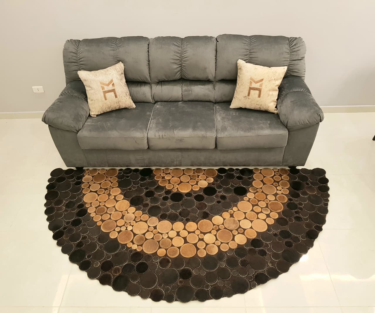 سجادة جلد طبيعي يدوي – نصف دائرة 2 لون